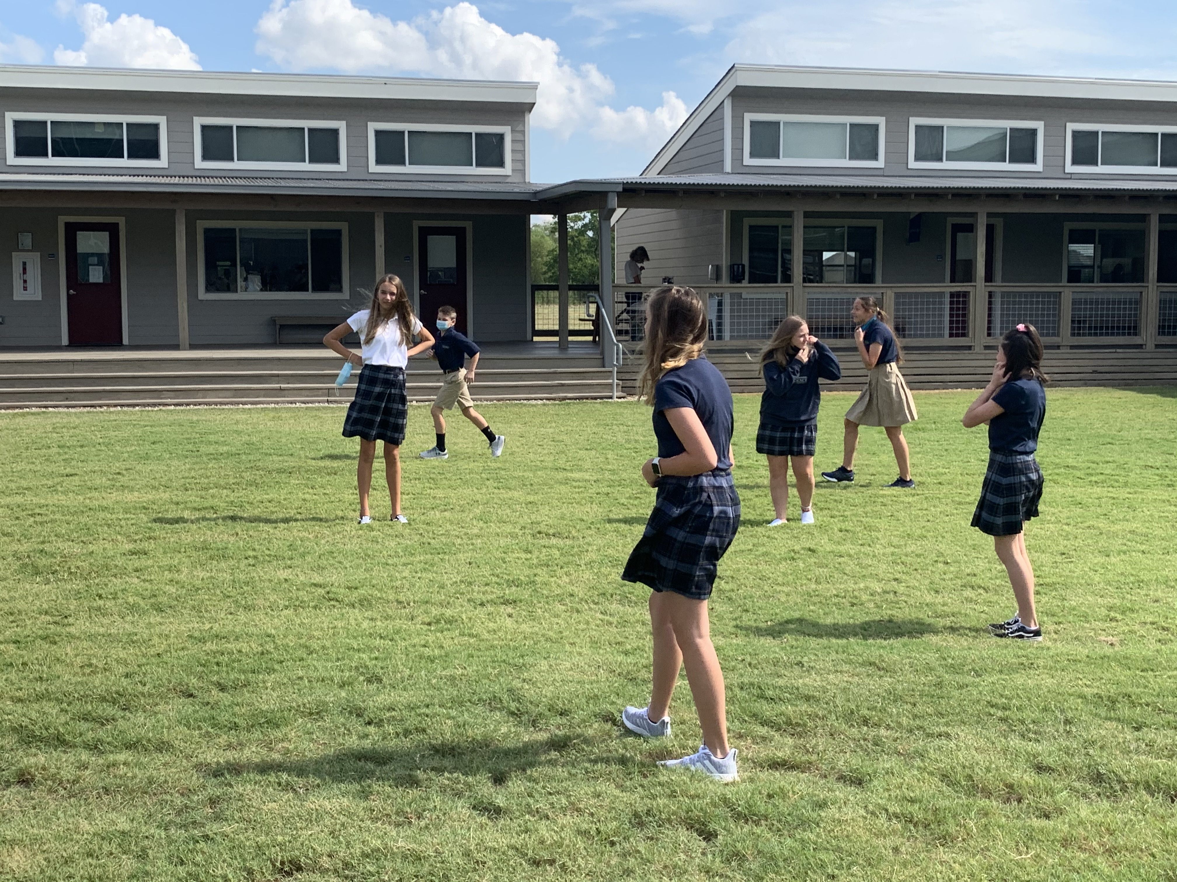 Through God’s providence, our school has been blessed with an open-concept campus that makes it possible for us to follow CDC and TEA guidelines for in-person learning. Our classrooms are equipped with external doors and windows and individual air conditioning units. Students can access classrooms without crowding into internal hallways. We have ample space for outdoor play and lunch. And our pavilion allows us to continue physical education in a safe manner.