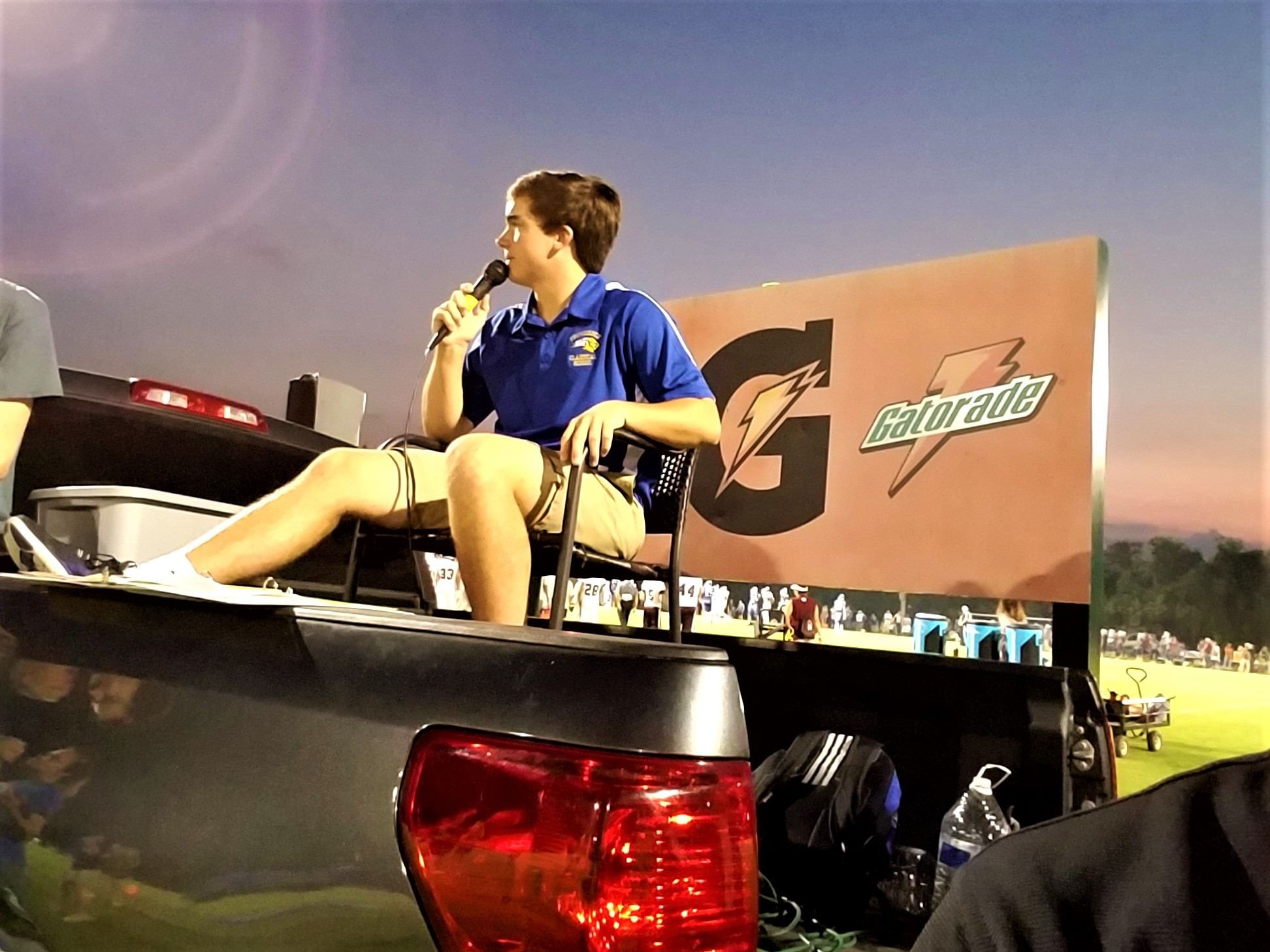 Colin Post ’18 announcing football games for Providence Classical School when he was a student.