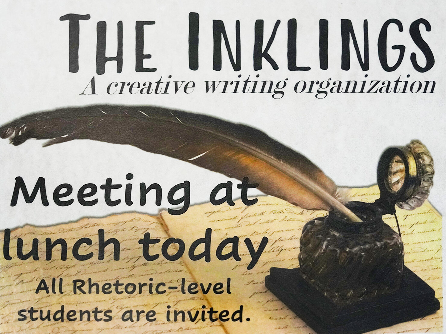 The Inklings is a creative writing organization for Rhetoric-level PCS students. They meet once a month to encourage each other and to provide feedback to one another on their own writing; discuss practical writing tools and strategies; participate in monthly writing challenges; read and discuss examples of beautiful and inspiring poetry and prose; and sponsor writing competitions such as the annual Poet Laureate contest. The Inklings’ fundamental conviction is that beauty – specifically beauty in words – belongs to the Lord.
