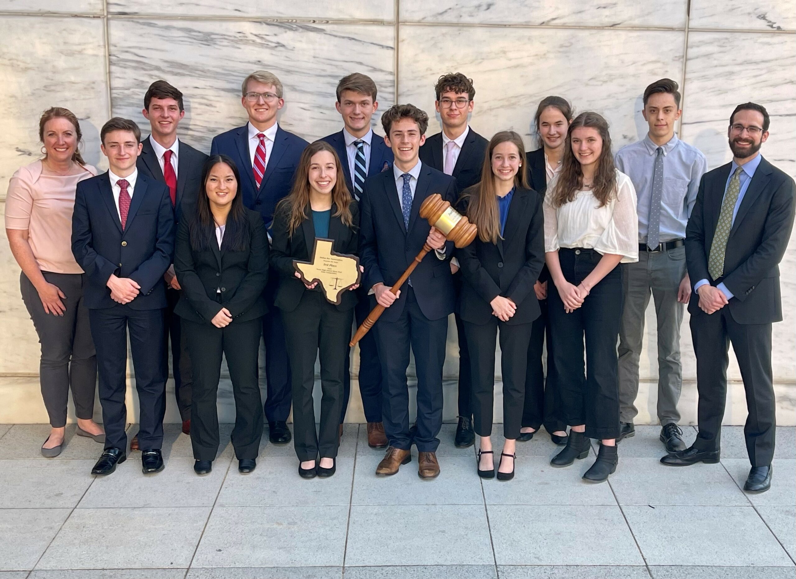 Mock trial is an advocacy competition in which students build their analytical and rhetorical skills by portraying attorneys and witnesses in a fictional legal case. The witnesses learn the facts in their witness statements, creating characters based on those statements. The attorneys deliver opening and closing arguments; question their own team’s witnesses by direct examination; cross-examine the witnesses from the other team; and make and respond to objections based on the rules of evidence. Mock Trial trains students to articulate their thoughts skillfully in an eloquent and persuasive manner, and it teaches them to think quickly under pressure. Also, portraying witnesses is a unique opportunity for students who enjoy acting. Mock Trial is an audition-only elective.