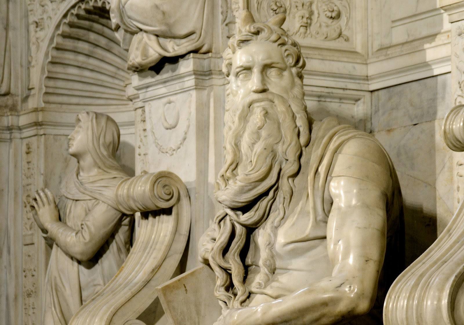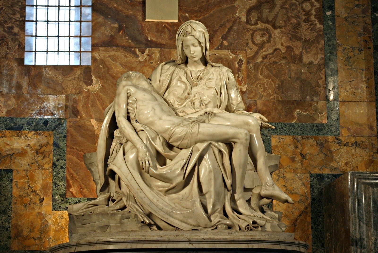 Christianity also influenced sculpting: La Pieta by Michelangelo shows Mary holding the deceased body of Jesus. Old Testament heroes also inspired statue creations like David by Michelangelo, depicting David before his fight with Goliath or Moses, also by Michelangelo.