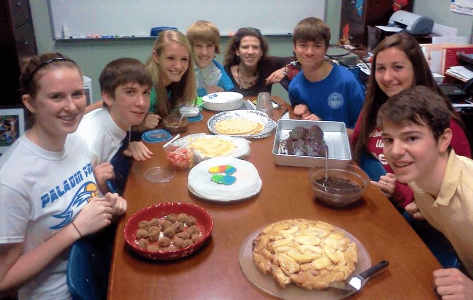 Former French I students (Class of 2015) with desserts they made themselves, following French recipes.